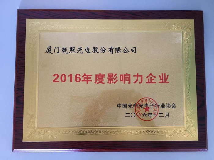 2016年12月6日,由中國光學(xué)光電子行業(yè)協(xié)會主辦的2016年度中國光電行業(yè)優(yōu)秀企業(yè)頒獎典禮在北京落下帷幕。乾照光電憑借在光電行業(yè)突出的影響力,摘得2016年度中國光電行業(yè)“影響力企業(yè)”榮譽(yù)。