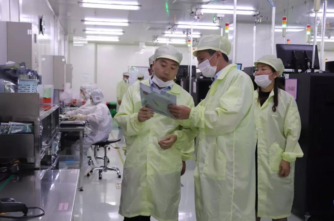 隨后,饒書記一行前往外延和芯片生產(chǎn)車間進(jìn)行參觀。劉兆簡要介紹了外延芯片生產(chǎn)制作流程和質(zhì)檢工作程序,并對芯片的檢測方式進(jìn)行了詳細(xì)的講解。饒書記對江西乾照光電的發(fā)展態(tài)勢給予了肯定,并關(guān)切地詢問了公司對加強(qiáng)和改進(jìn)營商環(huán)境的意見建議。