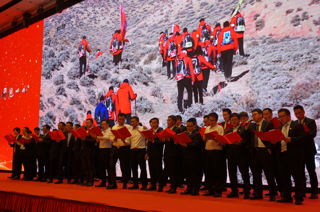 為增加晚宴歡慶氣氛,集團總部尾牙晚宴特別安排了慶生環(huán)節(jié),為全體12月生日員工共賀誕辰。董事長金章育作為壽星代表與壽星們一同切蛋糕做游戲。最后,參與張掖徒步的高管們共同上臺,合唱一曲《壯志在我胸》,將晚宴現(xiàn)場推向高潮。