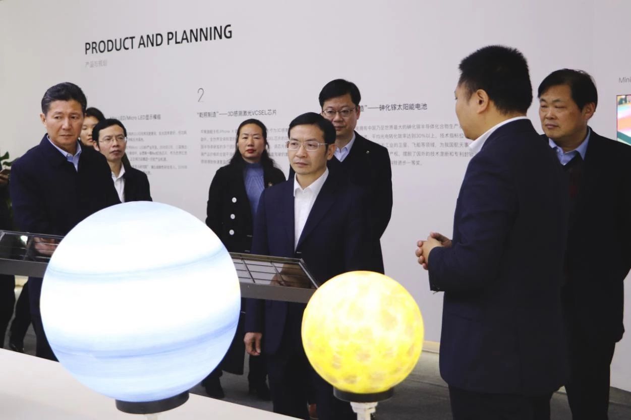 1月6日,南昌市市委副書記、代市長黃喜忠,市政府秘書長吳長金,市政府研究室主任李旭晟,區(qū)委書記饒紹清,區(qū)長陳吉煒以及長堎工業(yè)園區(qū)主要領(lǐng)導(dǎo)一行蒞臨江西乾照光電調(diào)研指導(dǎo)。乾照光電董事長金章育、江西乾照光電總經(jīng)理劉兆陪同接待。