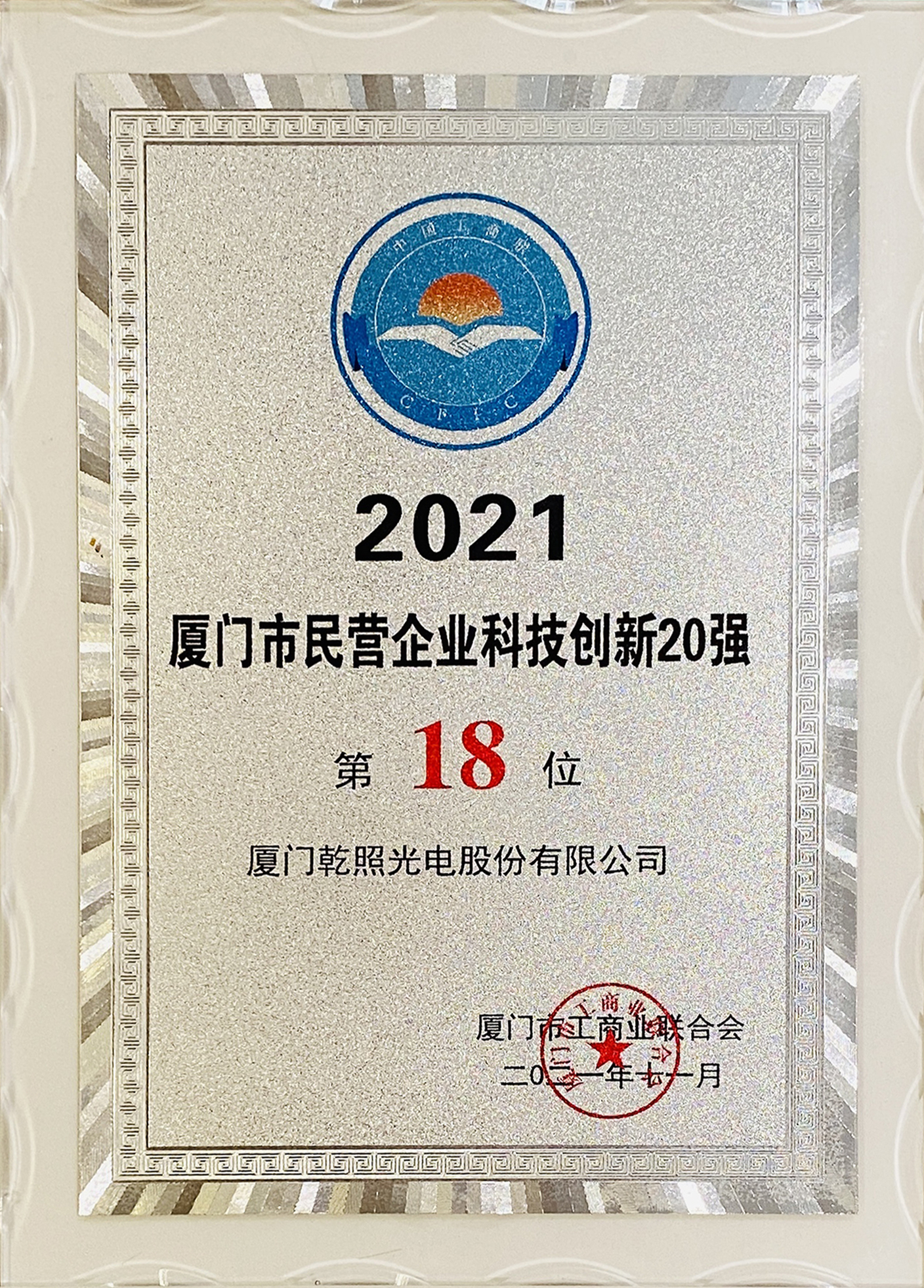 七、乾照光電榮獲“2021福建戰(zhàn)略性新興產(chǎn)業(yè)企業(yè)100強(qiáng)”&“2021廈門(mén)市民營(yíng)企業(yè)100強(qiáng)”