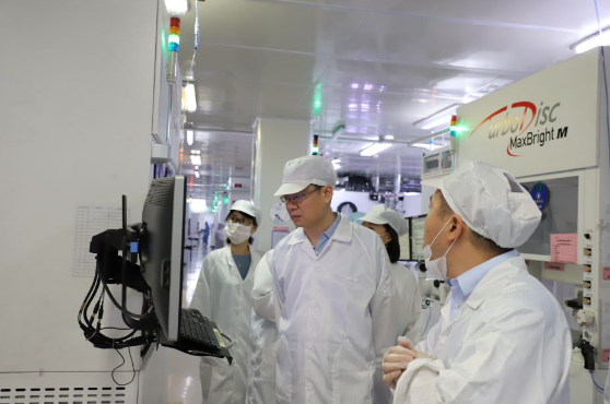 陳區(qū)長先后參觀了公司展廳及生產(chǎn)車間,集團(tuán)藍(lán)綠事業(yè)部總經(jīng)理、江西乾照光電總經(jīng)理劉兆向陳區(qū)長詳細(xì)介紹了產(chǎn)品的工藝流程。陳區(qū)長對乾照光電的產(chǎn)品及項目進(jìn)行深入的了解,并就關(guān)心的問題與陪同人員進(jìn)行深入的交流。