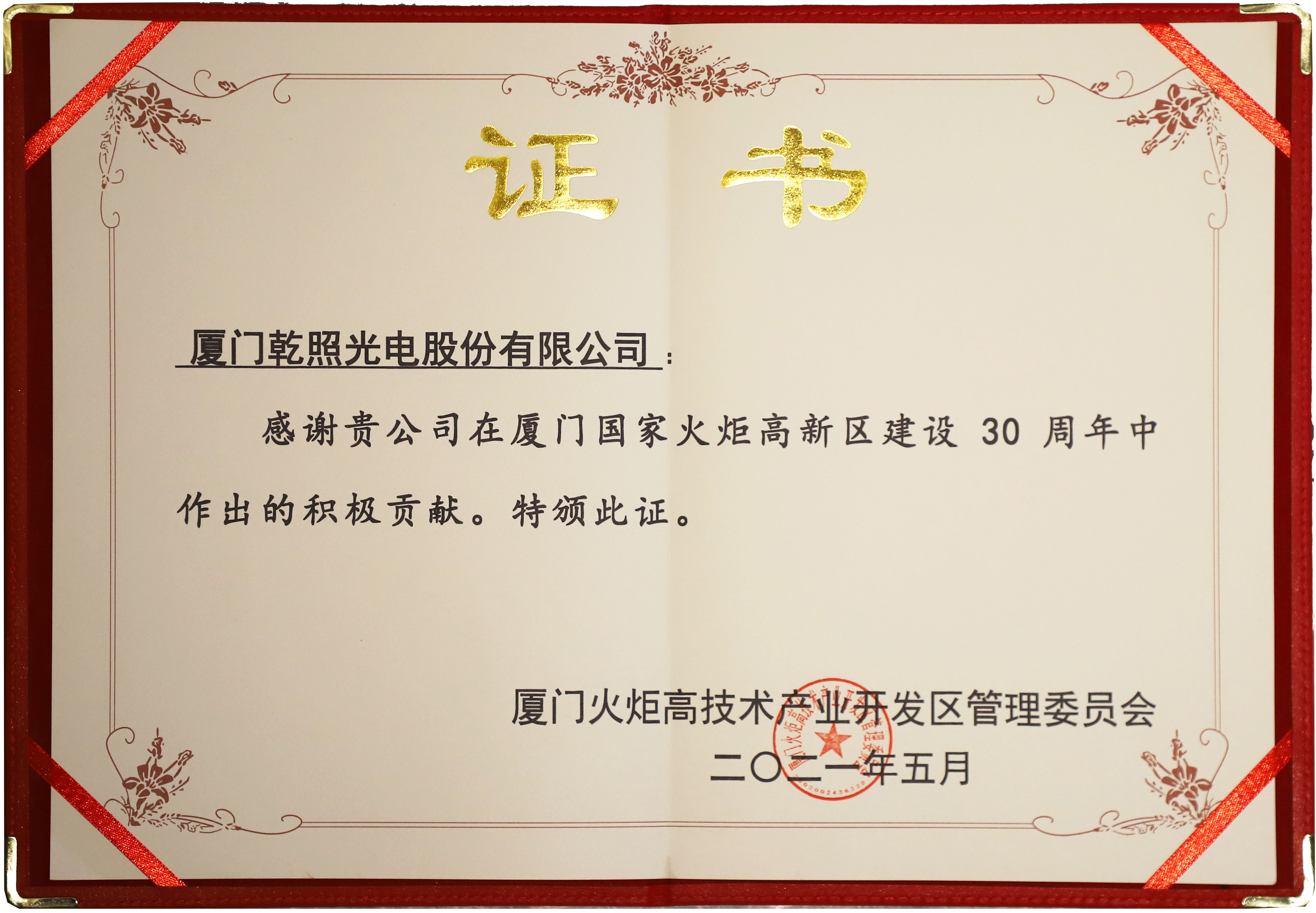 建區(qū)筑夢三十載,日新月異一晃間。接力傳薪擎火炬,不忘初 “芯”創(chuàng)未來。乾照光電將繼續(xù)發(fā)展企業(yè)優(yōu)勢和模范帶頭作用,朝著成為LED芯片領(lǐng)域最重要的供應(yīng)商和創(chuàng)新者的目標(biāo)穩(wěn)步邁進。在發(fā)展道路上,不斷精益求精,鞭策前行,為助推火炬高新區(qū)LED產(chǎn)業(yè)鏈不斷完善升級,及廈門新一輪高質(zhì)量發(fā)展新篇章增添強勁動力。