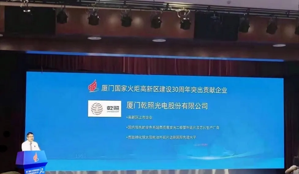 三、乾照光電榮獲“廈門國家火炬高新區(qū)建設(shè)30周年突出貢獻(xiàn)企業(yè)”稱號