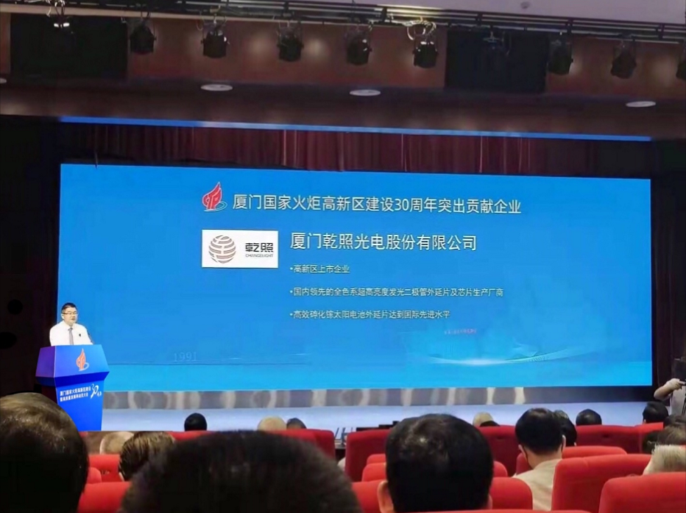 乾照光電榮獲“廈門國家火炬高新區(qū)建設30周年突出貢獻企業(yè)”稱號