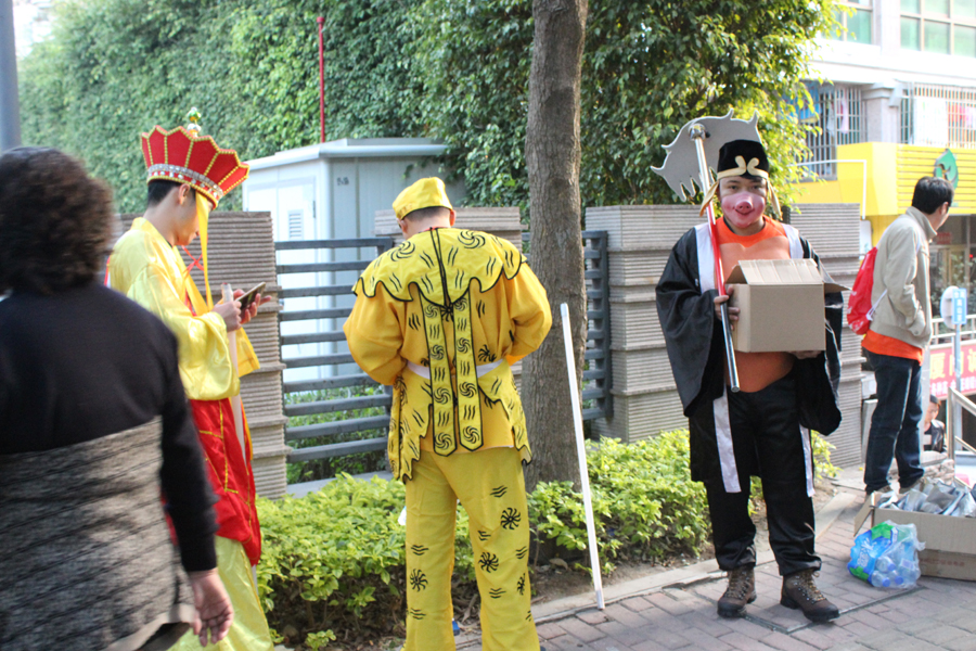 大冬天的,大家都起了個(gè)大早,就為了喬裝打扮呢。在這,小編要特別感謝那幾位穿道具服的小伙伴。他們“身披盔甲”,還未進(jìn)場(chǎng)已經(jīng)大汗淋漓啦。你們辛苦啦!